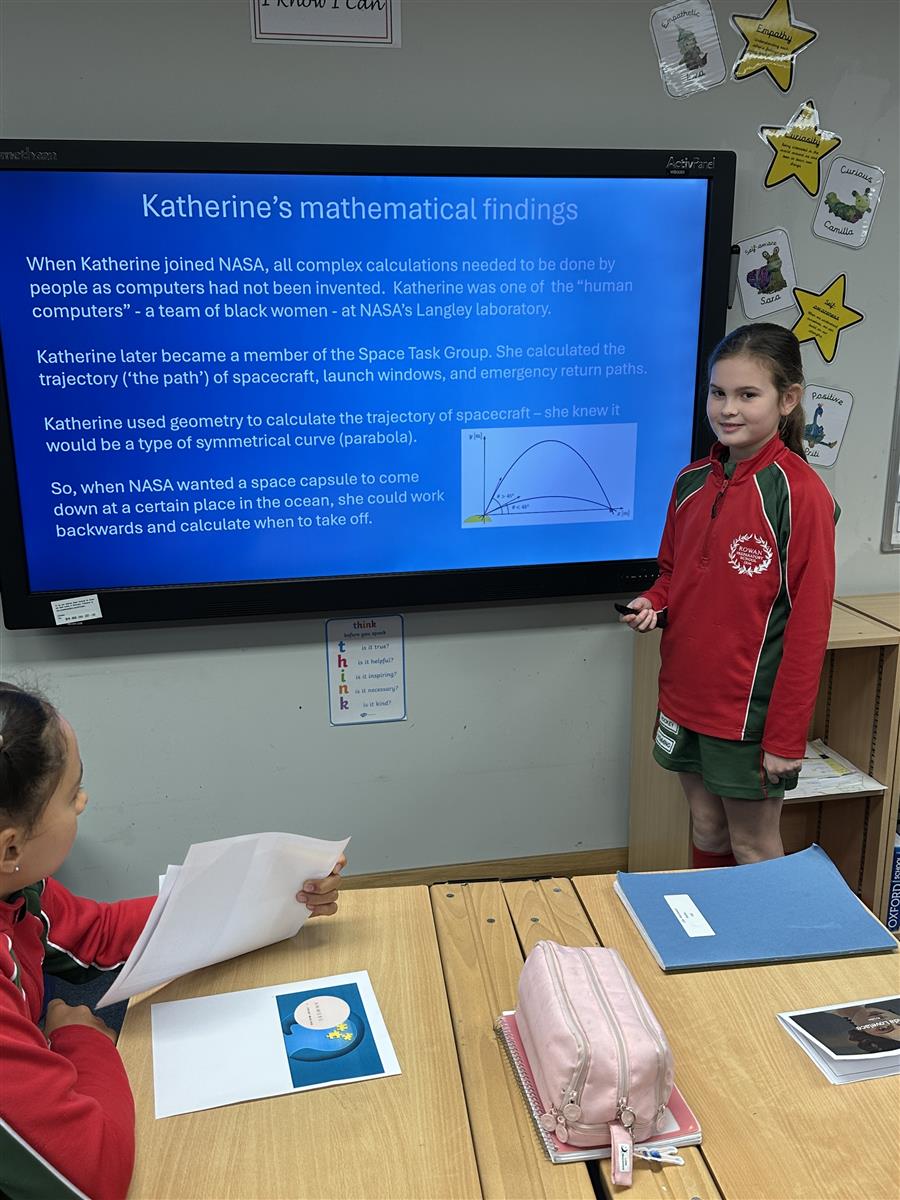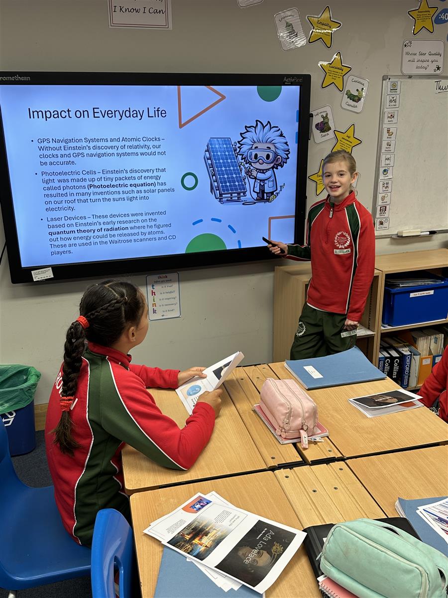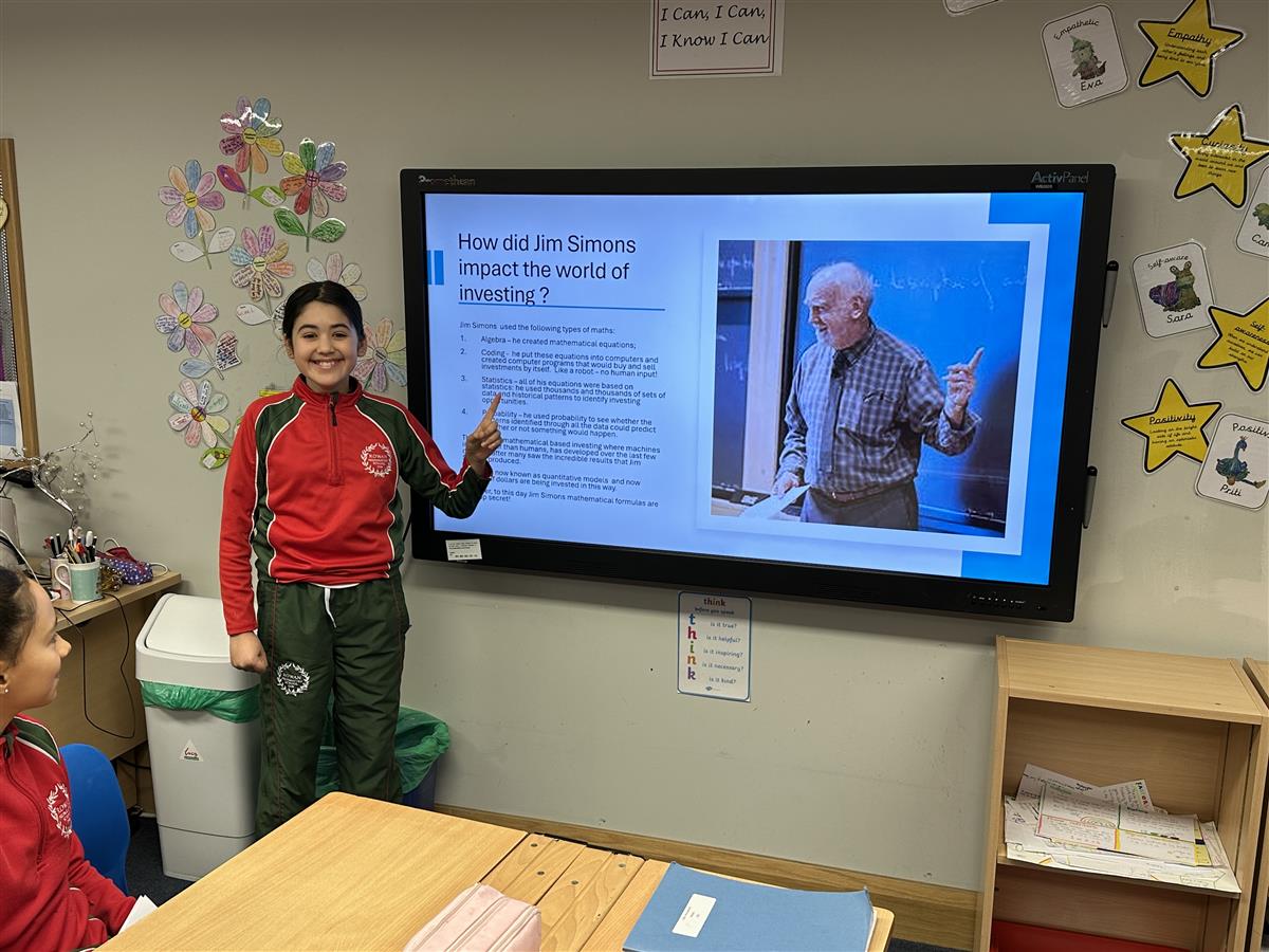 As part of the project, the girls delved into the work of a wide range of mathematicians, from historical pioneers to modern-day innovators. Their task was to research their chosen figure, understand their contributions to mathematics, and present their findings to their class. The results were truly impressive. The girls not only demonstrated their ability to summarise complex mathematical ideas but also showcased creativity, originality and confidence in their presentations.