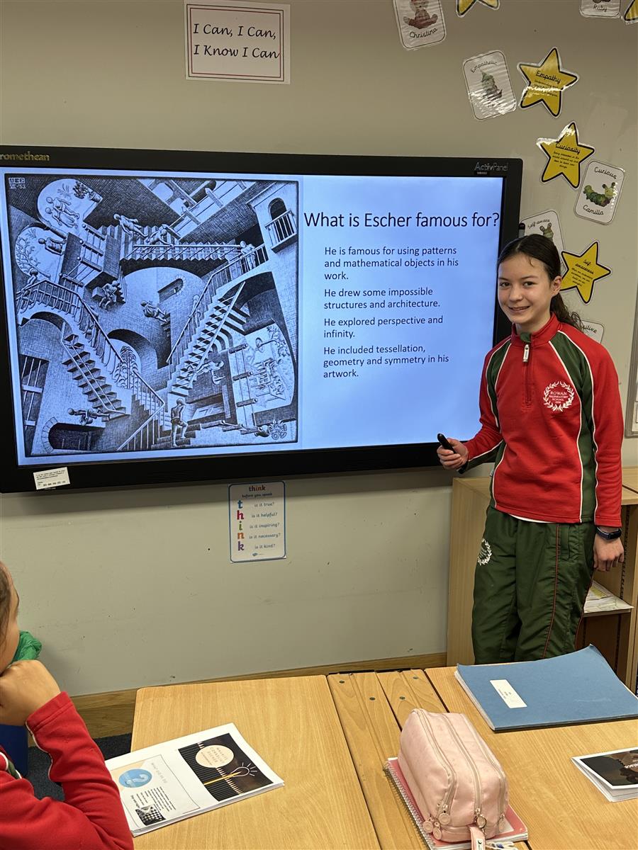 Through their research, they uncovered fascinating stories. We learned how Florence Nightingale revolutionised healthcare through statistical models, using data to drive change and improve medical practices. We explored M.C. Escher’s mesmerising artwork, where he played with perspective and the concept of the impossible in geometry. The girls also discovered the financial genius of Jim Simons, who applied mathematical equations to generate extraordinary success in the world of finance. And they were inspired by Ada Lovelace, whose pioneering work in programming laid the foundations for modern computing.
